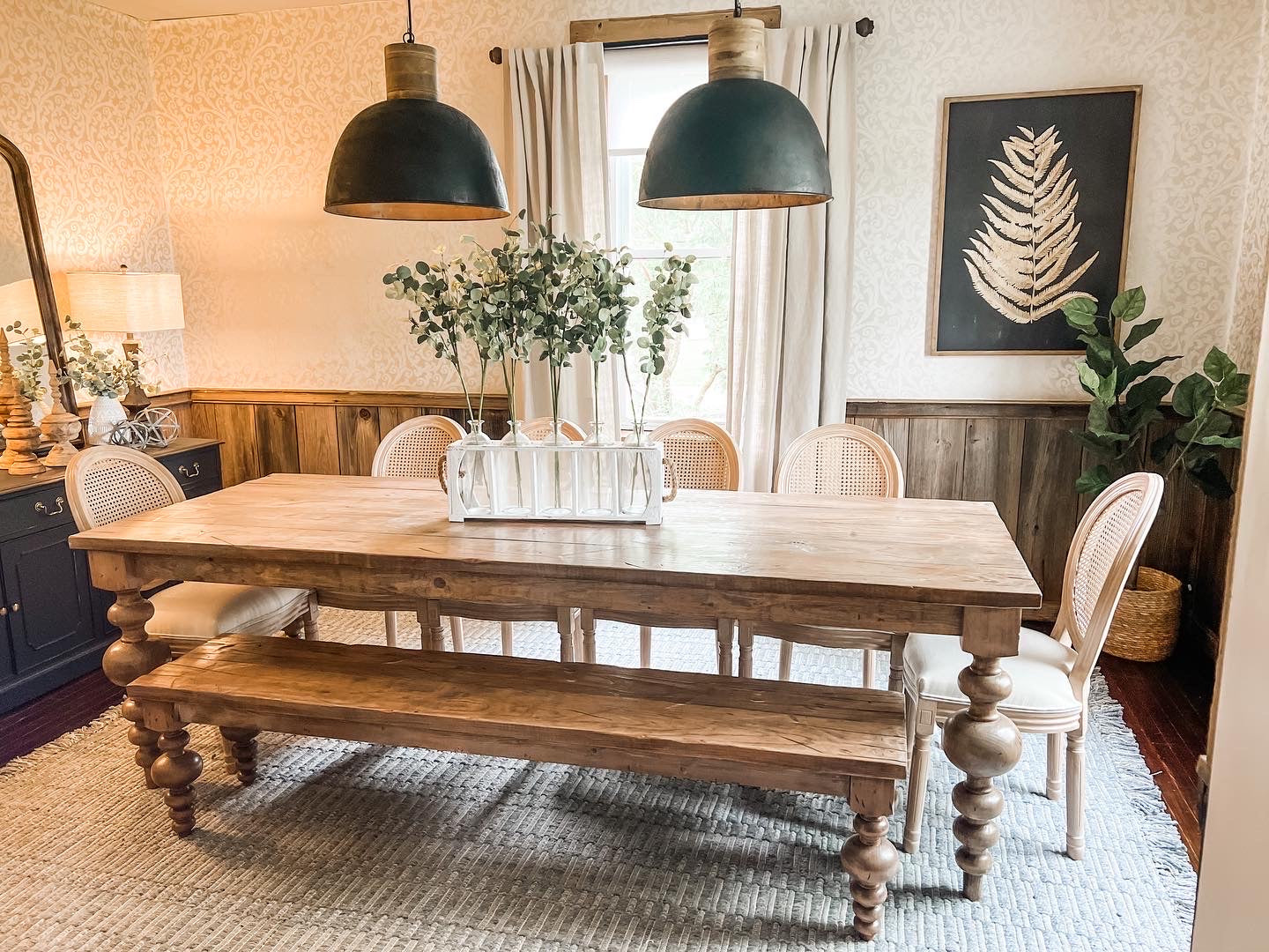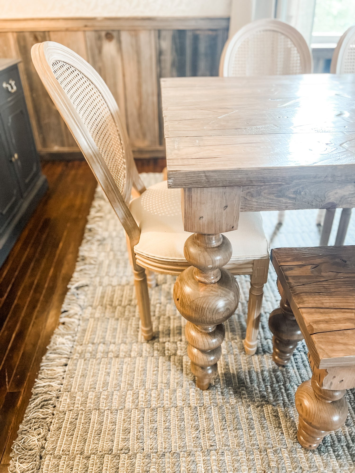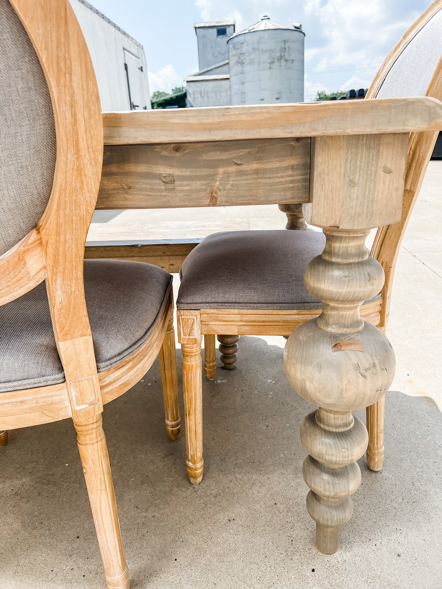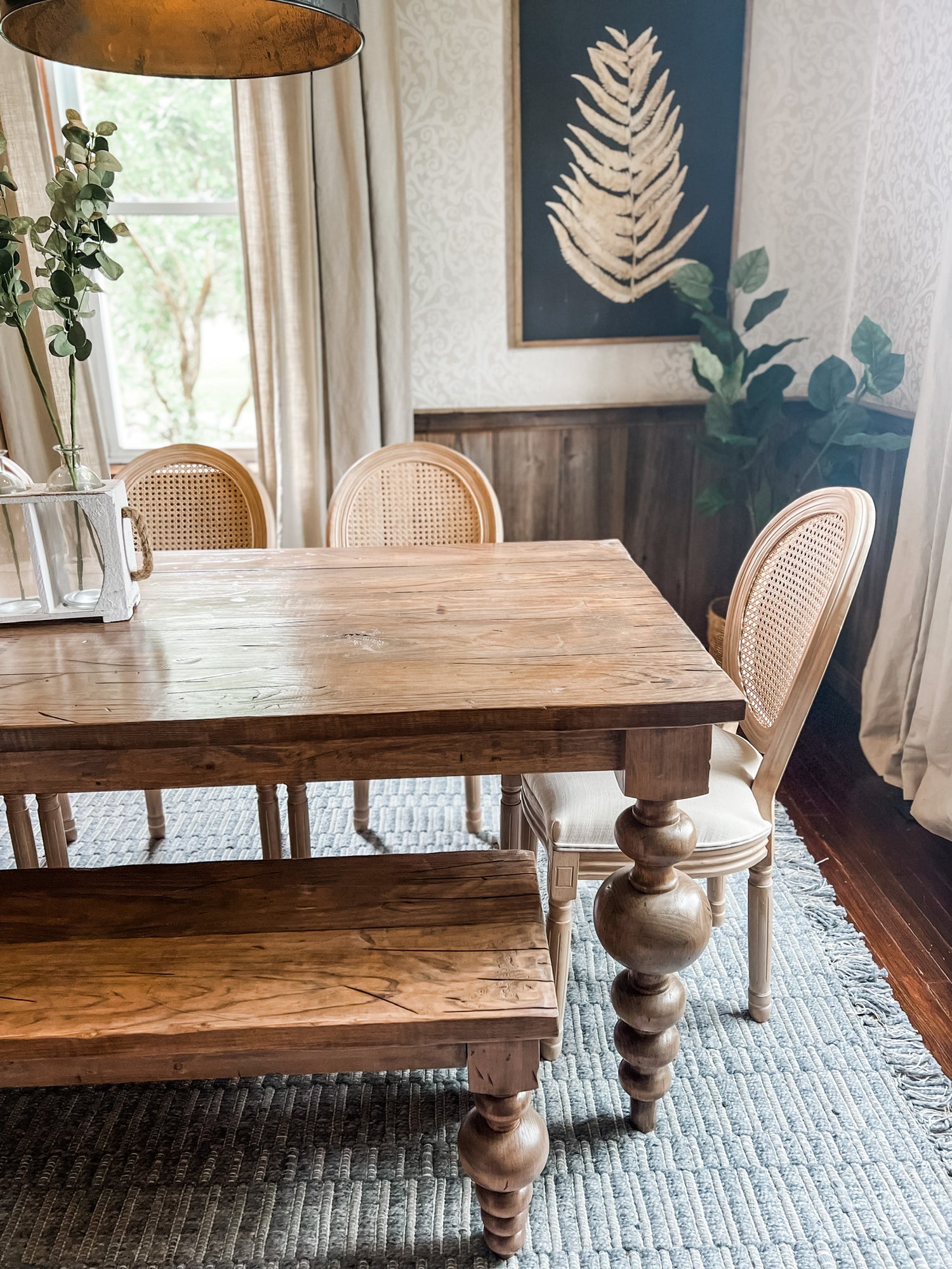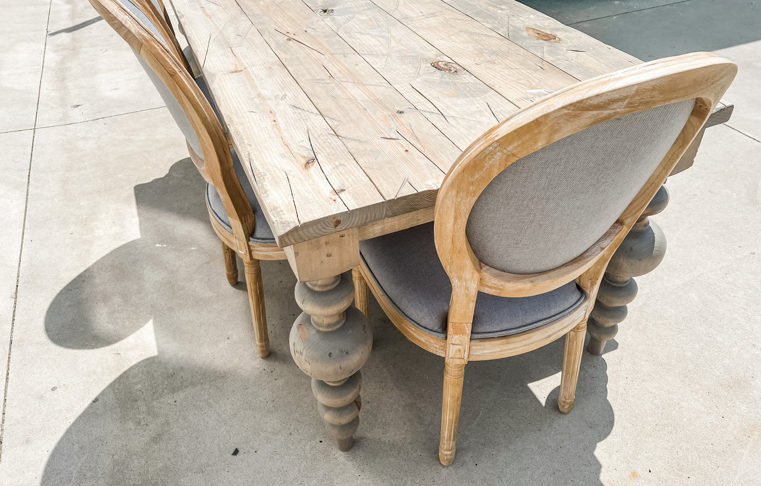 This is our beautiful modern chunky leg table. This elegant table is the perfect addition to any space and is sure to catch the attention of everyone who sees it! This French-inspired dining table exhibits substantial wood-turned legs and a beautifully handcrafted wood top.