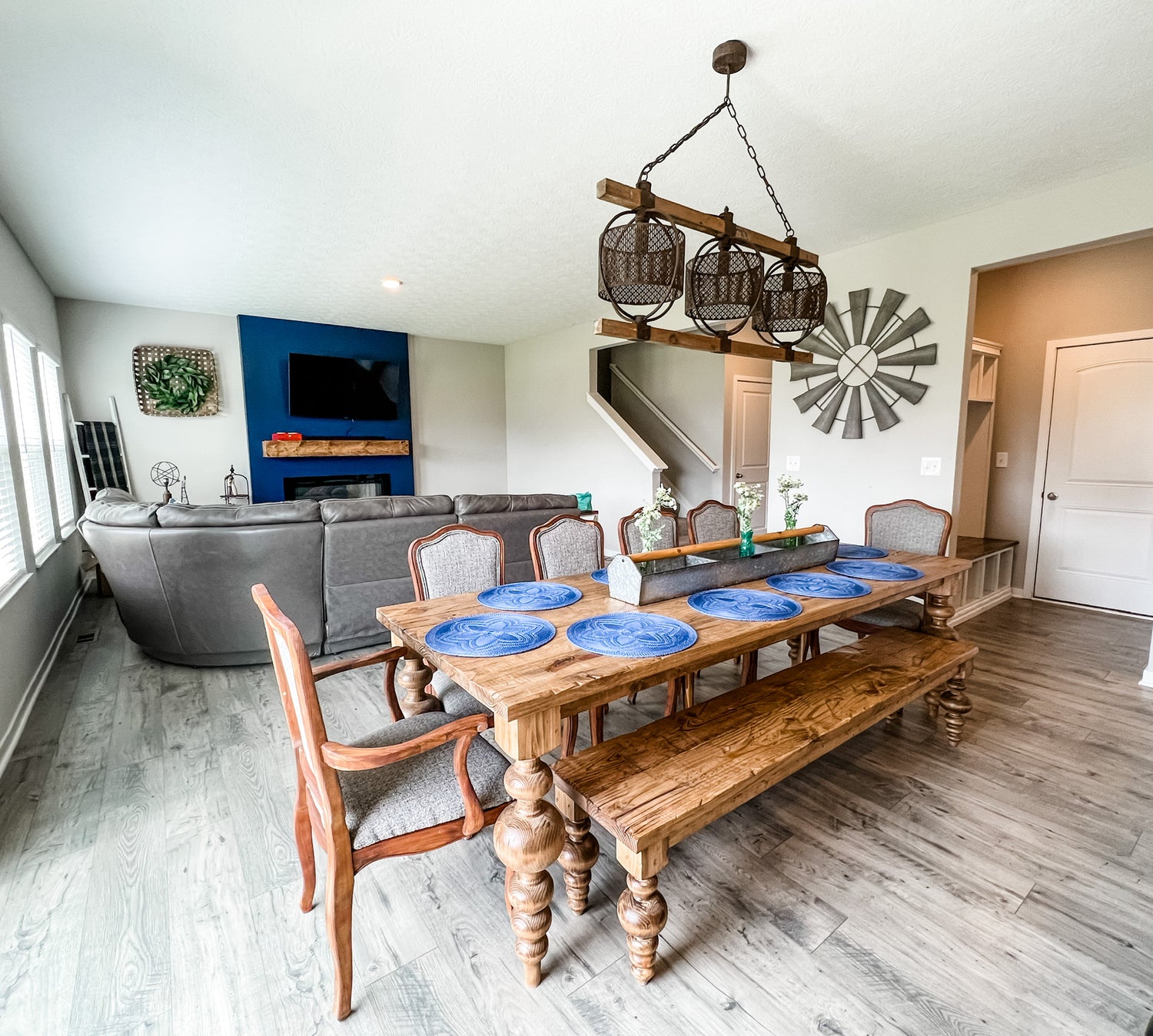 Any aspect of our tables can be altered to fit your needs! This table starts at $1098.00 at 5ft x 3ft (60" x 36") but all our tables are custom-made! We can create this gorgeous table to fit your space and your needs. We can make any table longer, shorter, or wider! Our tables come in a variety of finishes and we can color match them to create a piece that fits your space. We use Minwax stain and Fusion paint to make each individual piece a true one-of-a-kind.